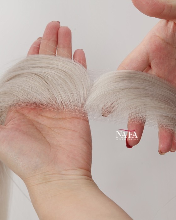 Restore confidence with this 12-inch premium gray hairline hair piece—thoughtfully designed for women experiencing a receding or thinning hairline. It enhances your look with subtle sophistication while maintaining a completely natural appearance.