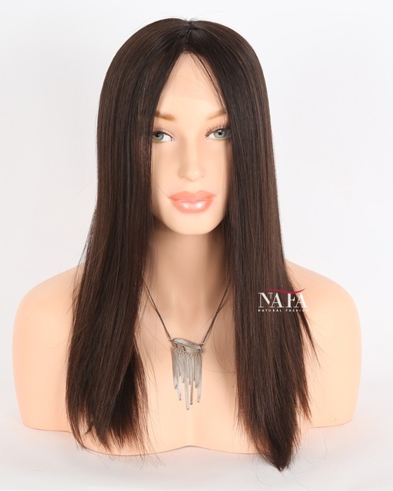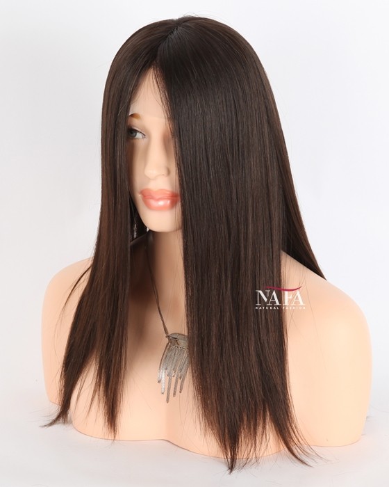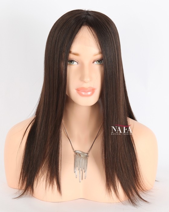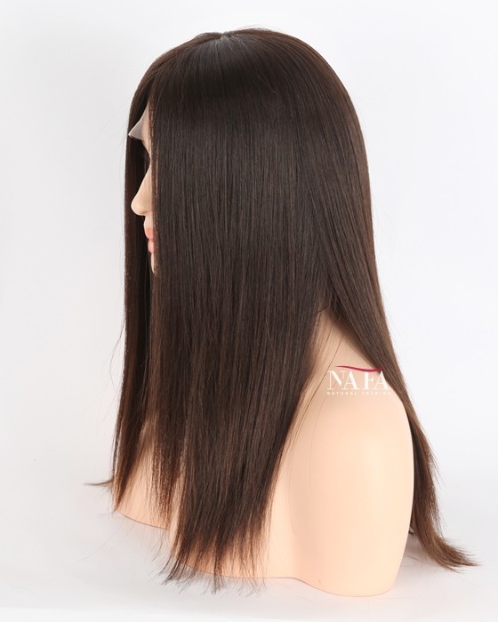 14 Inch Brown Straight Human Hair Lace Wig Transparent