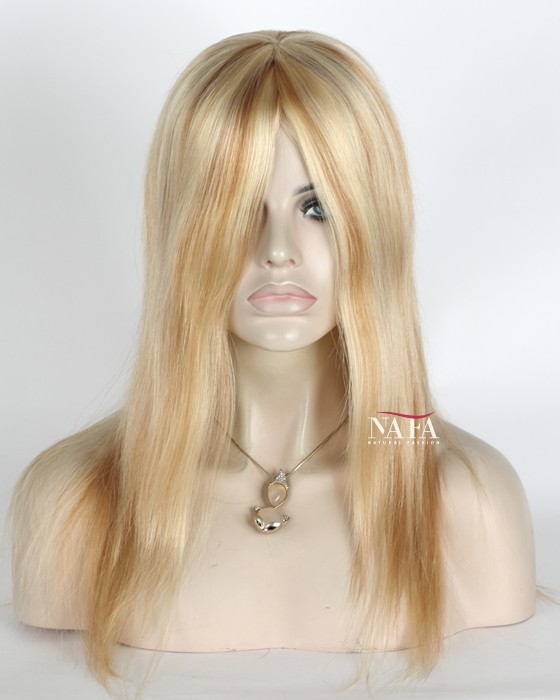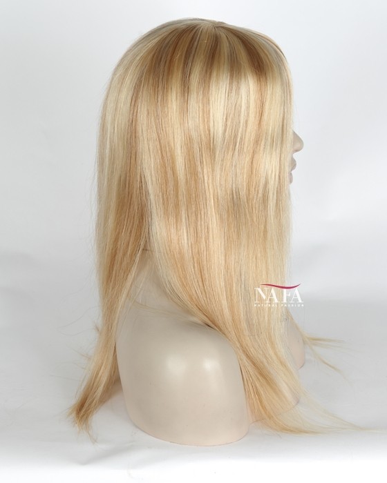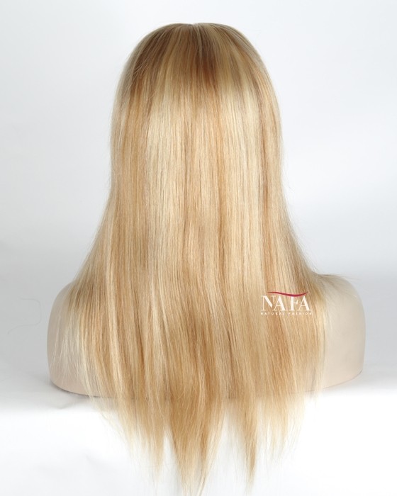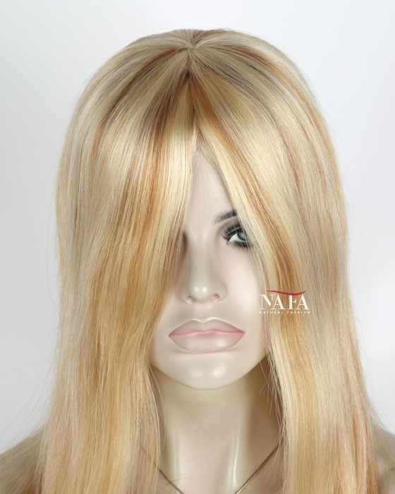 Elevate your look with the 14-Inch European Human Hair Blonde with Brown Highlights Wig. This stunning blend of warm blonde tones and subtle brown highlights creates a multi-dimensional, sun-kissed effect that’s effortlessly chic. The medium length and straight texture make it the ideal choice for women seeking timeless elegance with a modern twist.