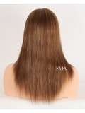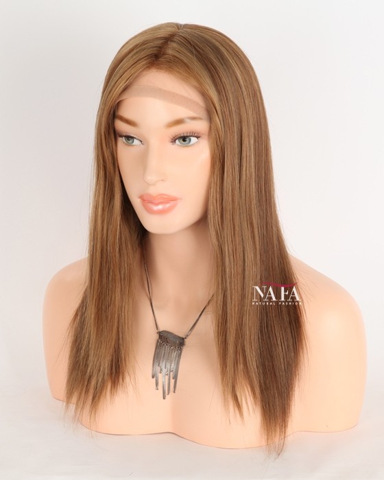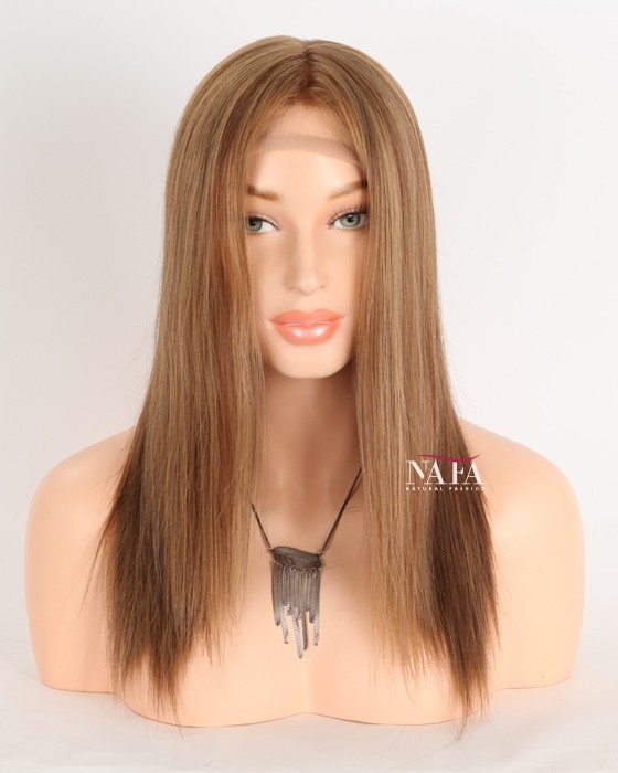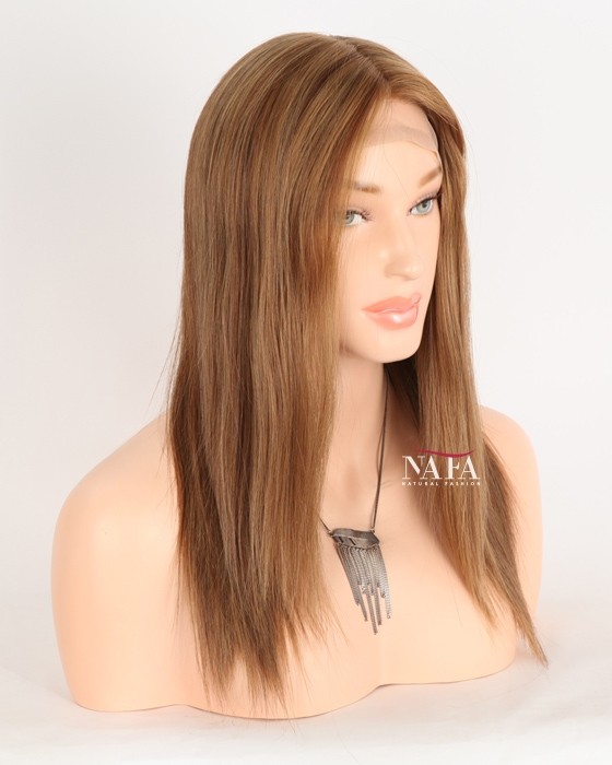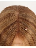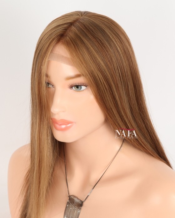 Enhance your natural beauty with this 14-inch golden brown highlight glueless wig for women. The rich golden brown base is beautifully accented with soft, luminous highlights that add depth, brightness, and dimension. This flattering color combination creates a radiant, sun-kissed effect that complements a wide range of skin tones and delivers a fresh, modern look.