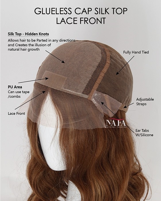 Cap Construction: Lace front glueless cap with silk top, non-slip in sides