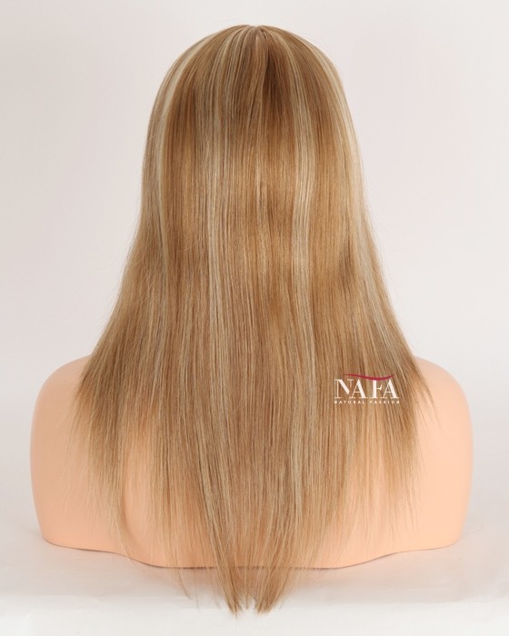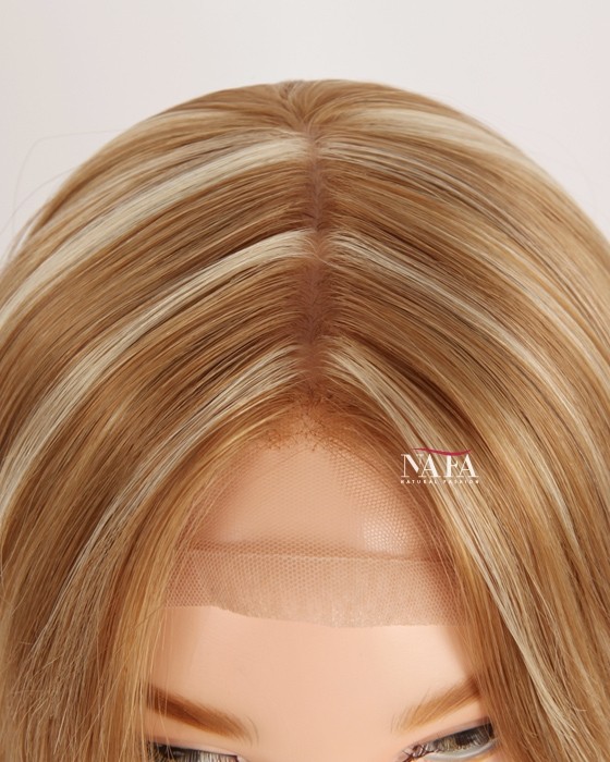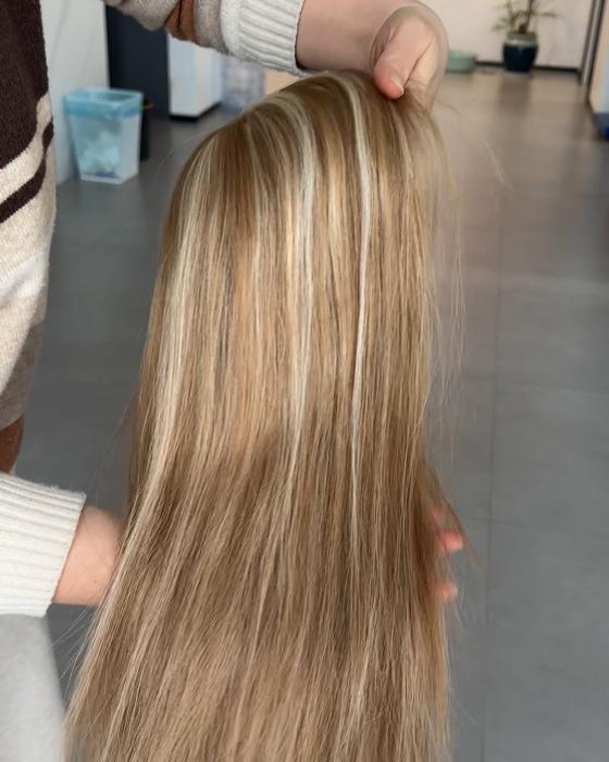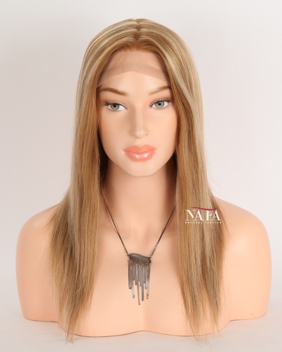 Refresh your look with this 14-inch light brown silk top human hair wig, beautifully enhanced with soft, dimensional highlights. The light brown base paired with natural-looking highlights creates a sun-kissed effect that adds depth, brightness, and effortless elegance. Designed to blend seamlessly with a variety of skin tones, this color combination delivers a youthful, salon-fresh appearance that looks completely natural.