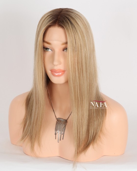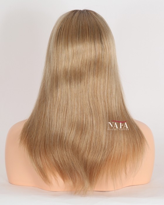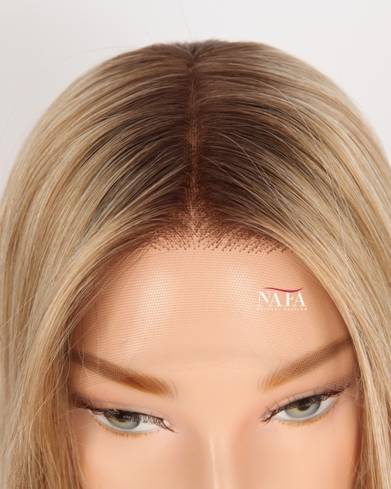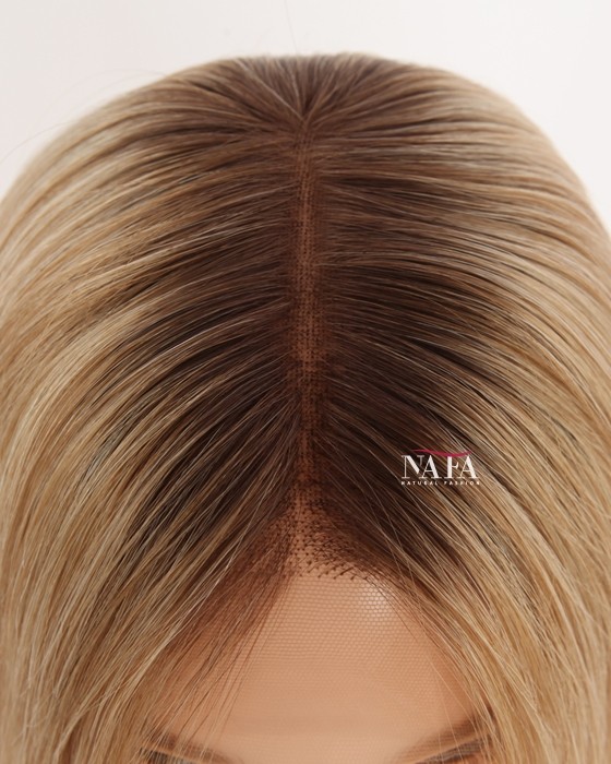 Make a statement with the 14-inch mid-length ombre brown roots orange wig, designed for those who love a unique and eye-catching look. The natural brown roots seamlessly fade into a vibrant orange hue, creating a warm, sun-kissed gradient that enhances any skin tone.