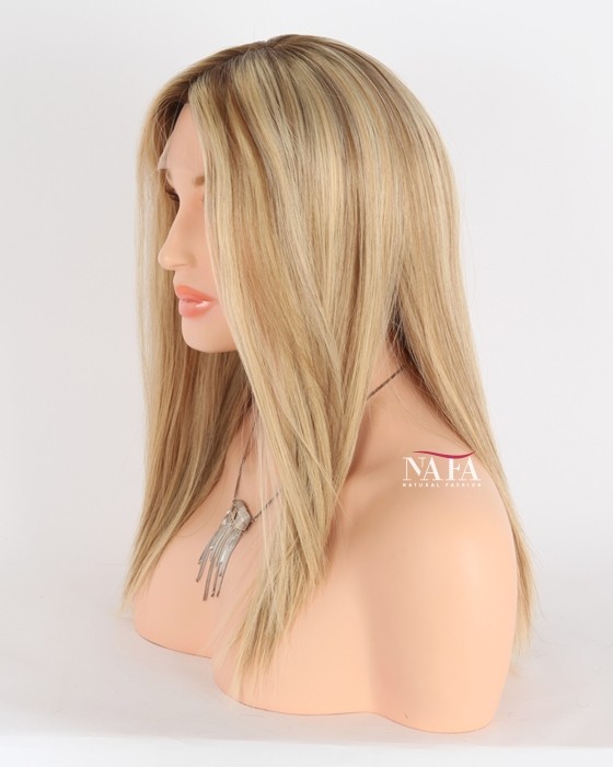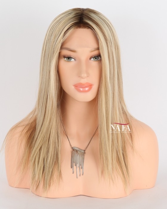 Illuminate your look with our 14 Inch Ombre Highlight Honey Blonde Wig designed exclusively for blondes. This captivating wig features a luminous ombre effect that transitions from dark roots to a vibrant honey blonde hue, adorned with subtle highlights for added dimension. Crafted from real human hair, the 14-inch length offers versatility for various styling options. Whether you're looking to add a touch of warmth to your everyday style or make a statement at a special occasion, this wig promises to enhance your natural beauty with its radiant glow.
