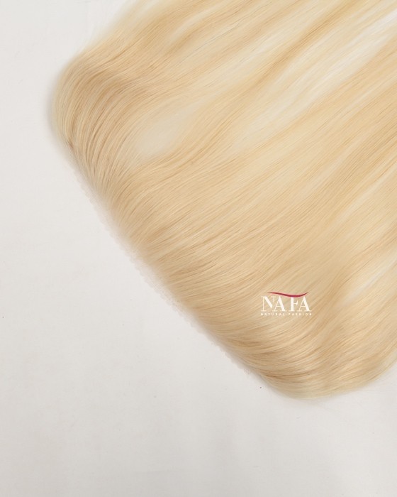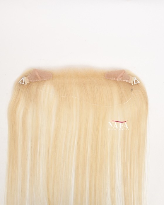 Refresh your look instantly with this 16-inch 613 blonde hairline topper, designed to conceal receding hairlines with a radiant, natural finish. The iconic 613 blonde shade delivers a clean, luminous tone that brightens your overall appearance while blending seamlessly with blonde or light-colored hair. Perfect for everyday wear, it creates a smooth, youthful-looking front hairline.