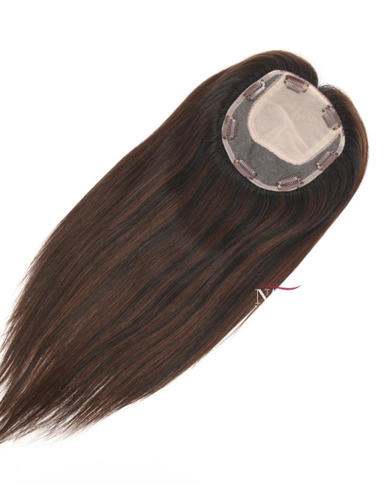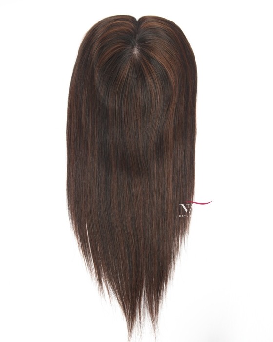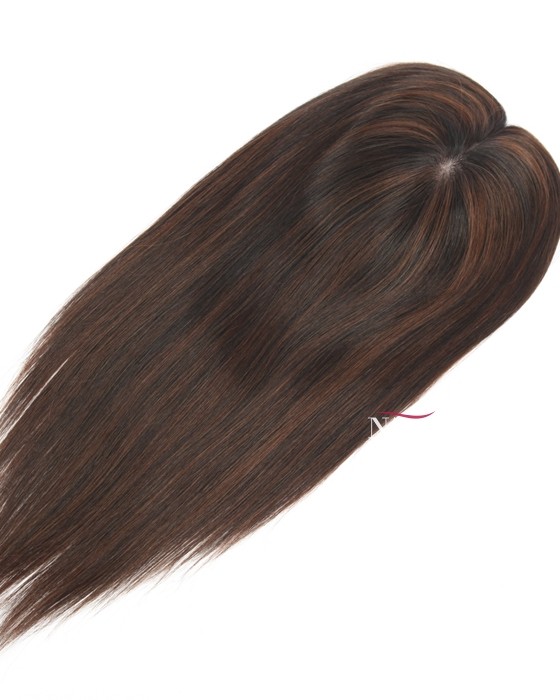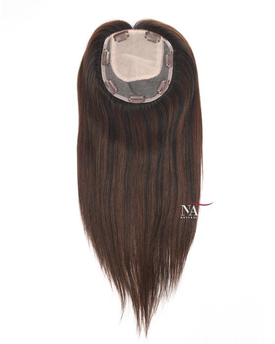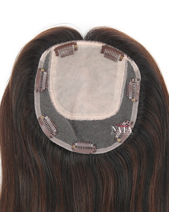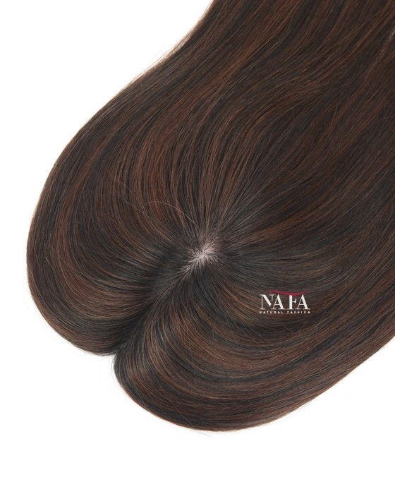 Transform your hairstyle with our 16 Inch Black Hair and Brown Highlights Silk Base Hair Topper for Women. This topper offers a natural-looking blend of black hair with brown highlights, adding dimension and depth to your locks. Crafted with precision, it seamlessly integrates with your natural hair for a flawless and realistic appearance that enhances your overall look.