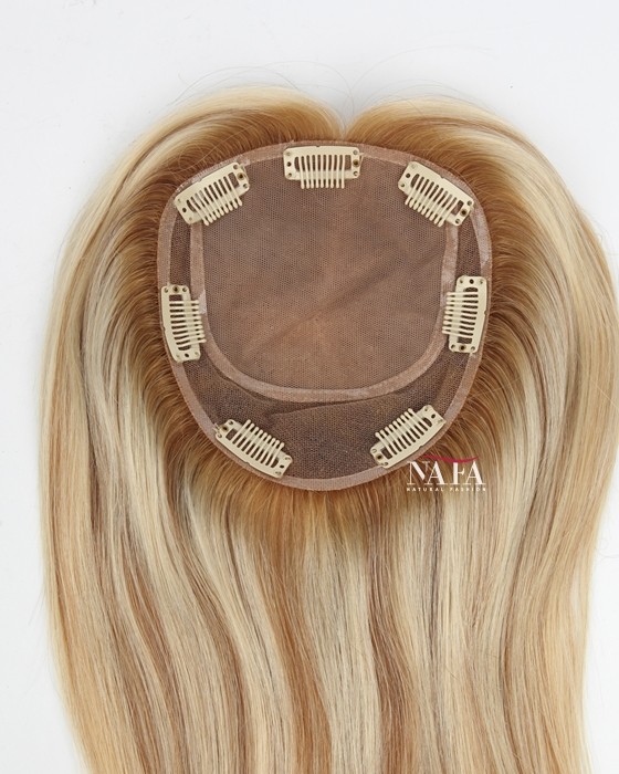 Achieve natural-looking volume with our 16 Inch Blonde Hair Swiss Lace Topper. Crafted to seamlessly blend with your natural hair, this topper adds thickness and fullness, providing a voluminous appearance and boosting your confidence.