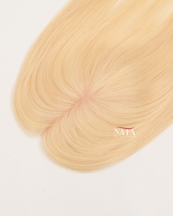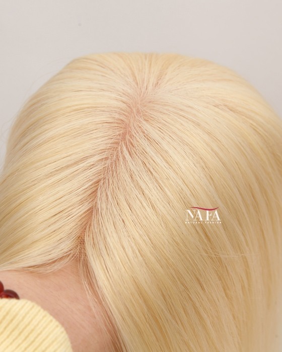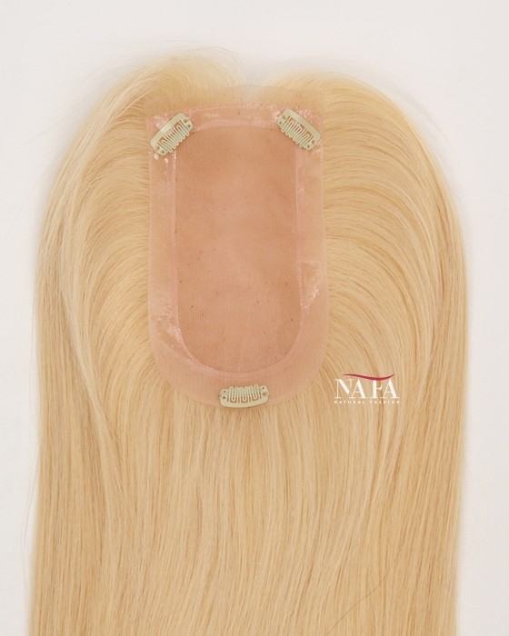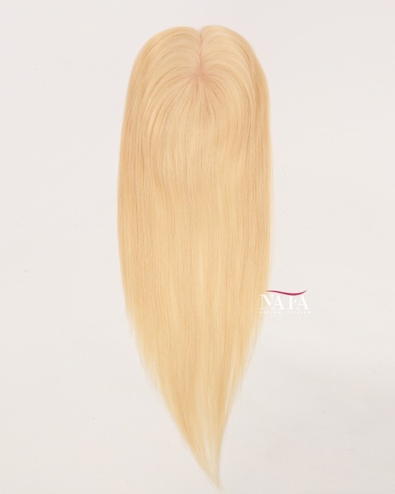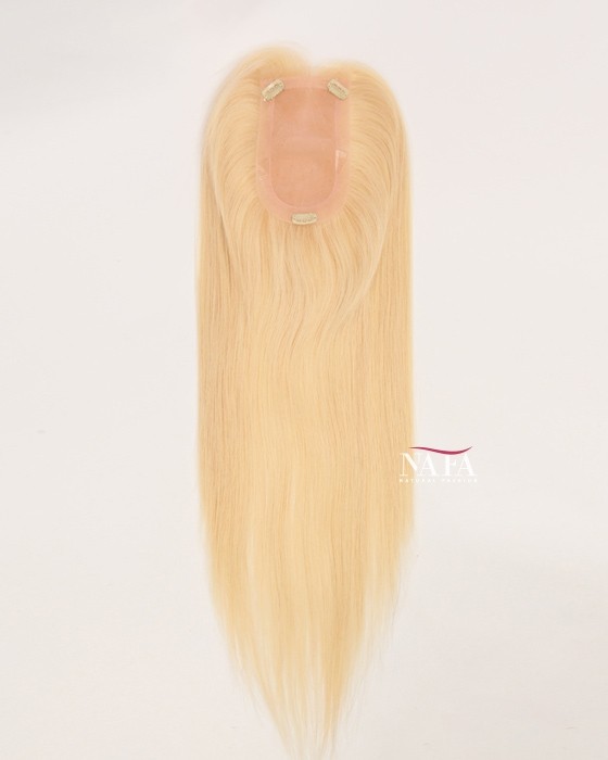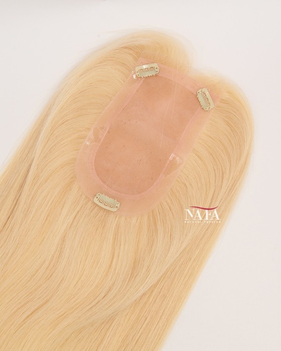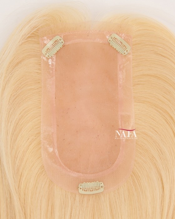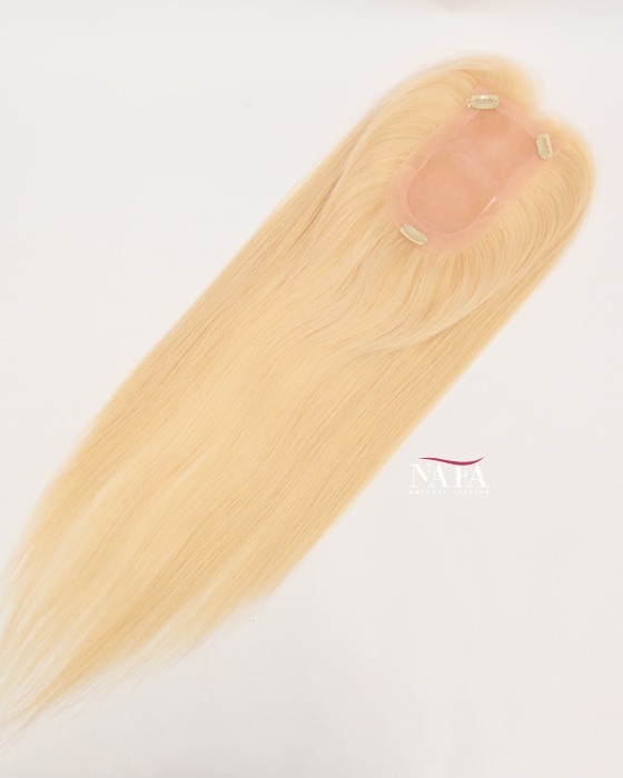 Experience confidence-boosting coverage with the 16-Inch Blonde Silk Top Human Hair Topper, expertly designed for women experiencing hair loss at the top of the head. The luxurious silk top base creates a hyper-realistic scalp appearance, allowing you to part the hair in any direction without visible knots.
