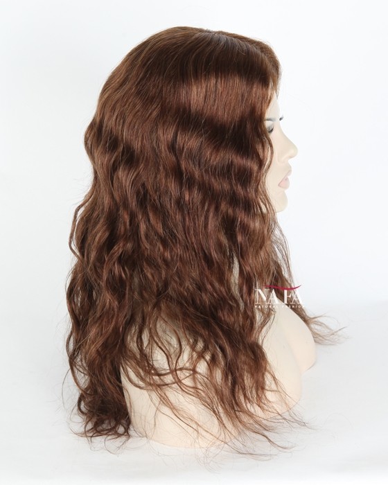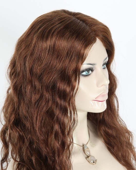 Enhance your look with the 16-Inch Chestnut Brown Wavy Glueless Full Lace Wig, a luxurious choice for a flawless, natural appearance. The rich chestnut brown color paired with soft, flowing waves creates a voluminous and elegant look that is perfect for any occasion.