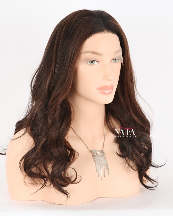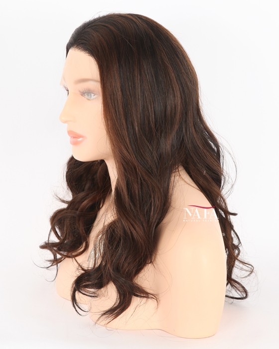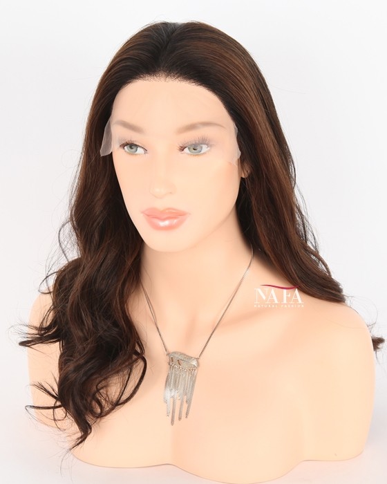 Sleek Sophistication: 16 Inch Dark Brown Wavy Glueless Lace Front Frontal Wig
