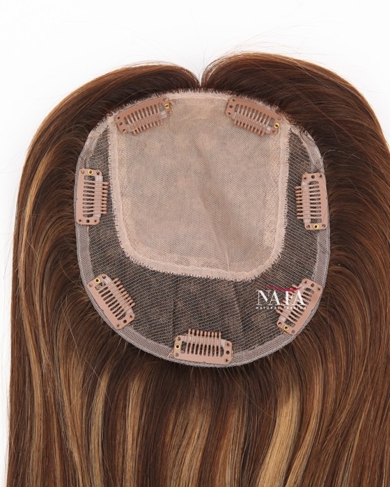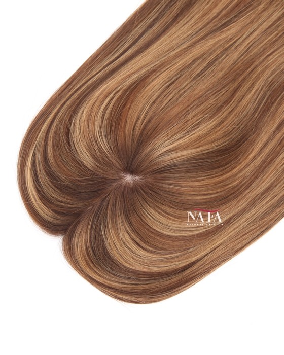 Radiant Shine and Natural Glow with Our Golden Brown Highlights Hair Topper for Women