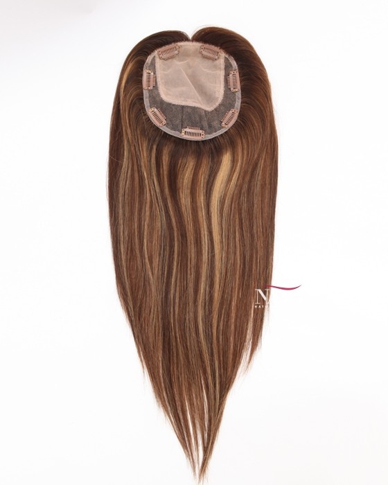 Illuminate your style with our 16 Inch Golden Brown Highlights Silk Hair Topper for Women. Crafted to perfection, this topper features golden brown highlights that add a radiant shine and natural glow to your hair. The seamless blend of colors creates depth and dimension, ensuring a stunning and realistic appearance that enhances your overall look.