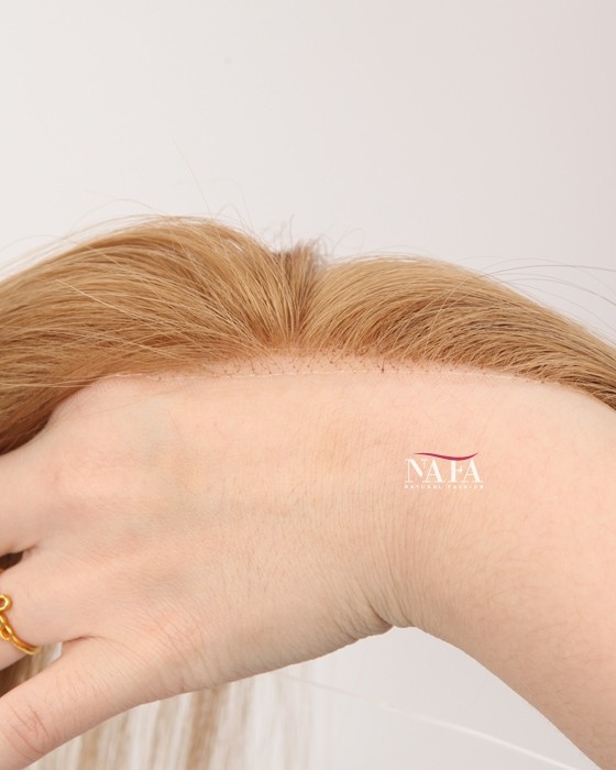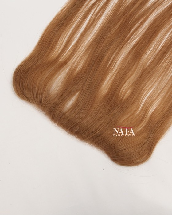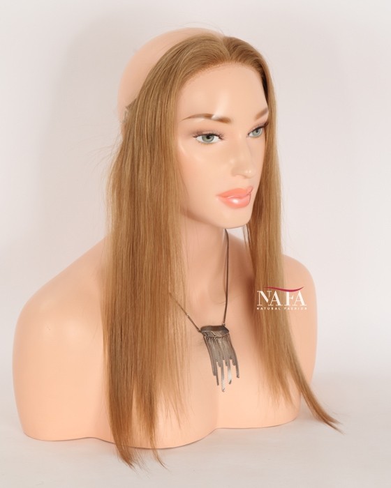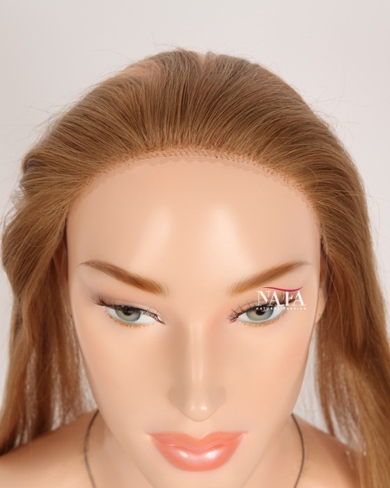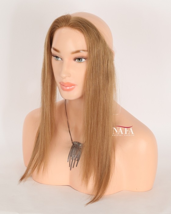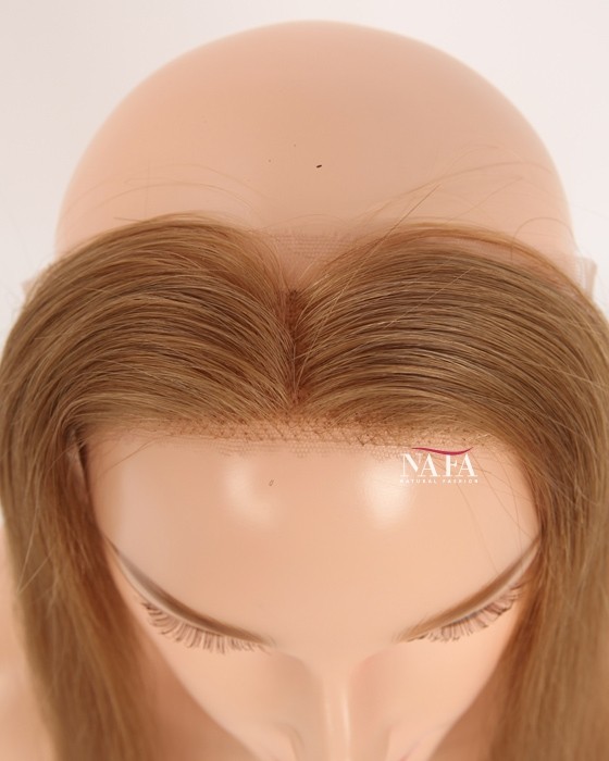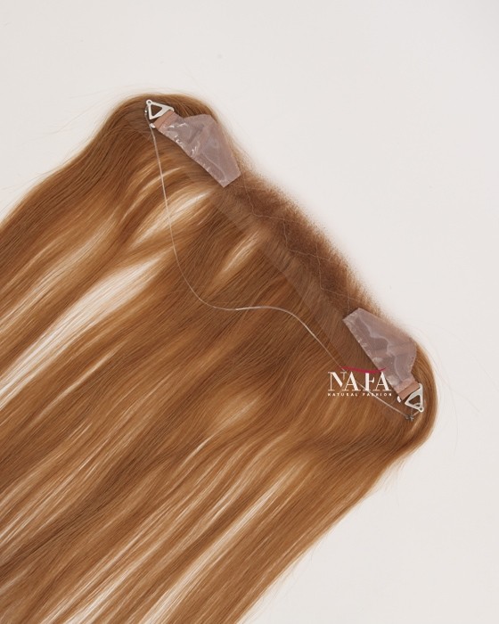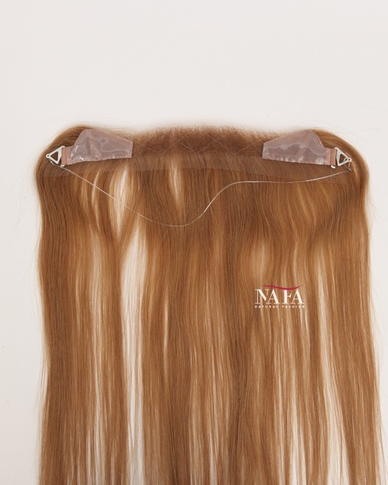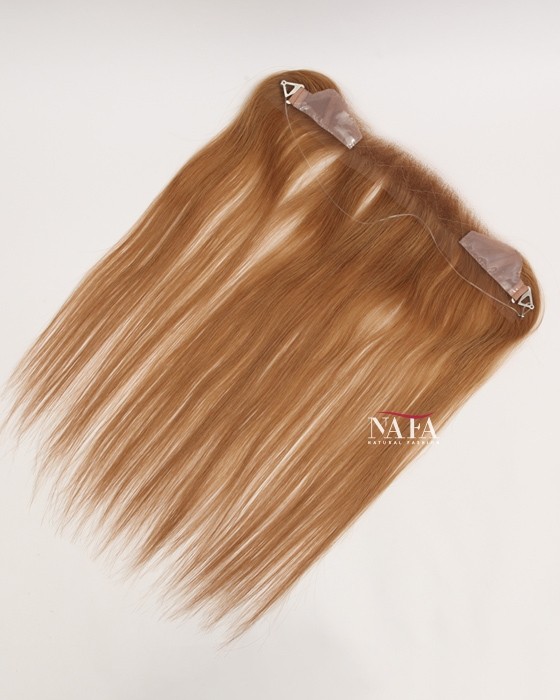 Enjoy effortless hairline coverage with this 16-inch light brown human hair hairline topper, designed with a discreet halo wire and no clips. Ideal for women with sensitive scalps or fine hair, this topper delivers a natural look while keeping your own hair protected. This piece delivers natural coverage, light weight,comfort, and confidence without compromise.