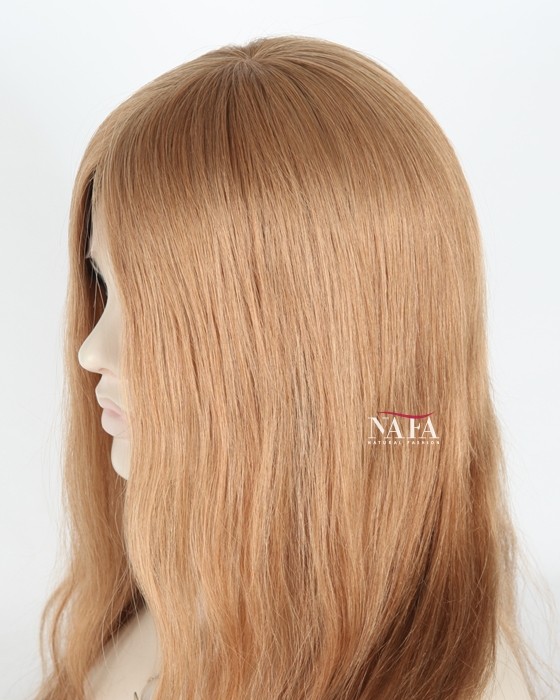 Experience the beauty of a flawless, natural look with our 16 Inch Golden Brown Blonde Human Hair Glueless Wig. Designed with a natural hairline, this wig blends effortlessly with your scalp, giving the illusion of naturally growing hair. The golden brown and blonde hues create a sun-kissed effect, perfect for adding warmth and radiance to your appearance.