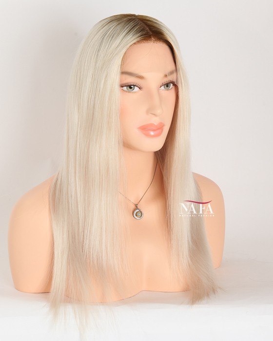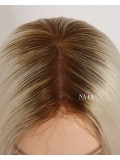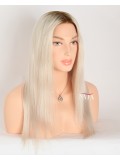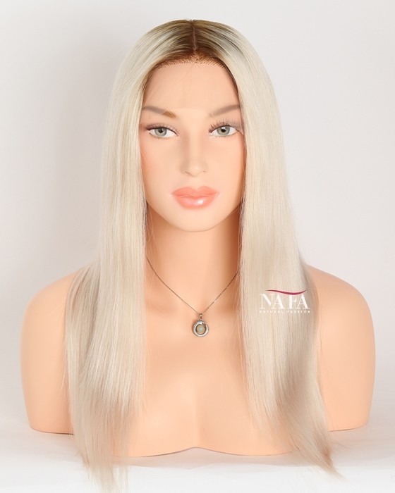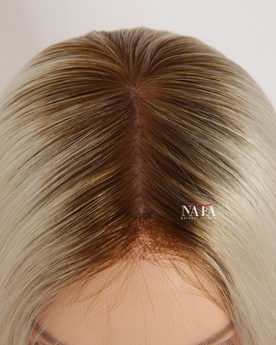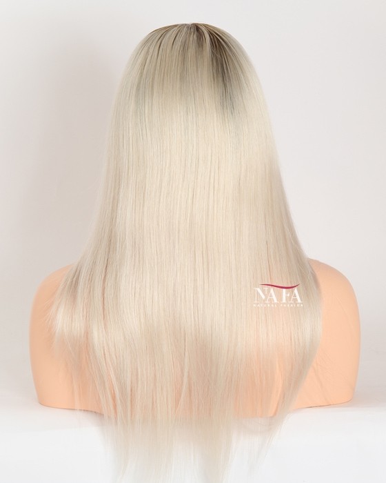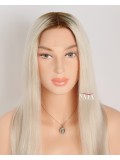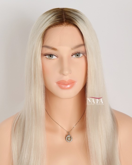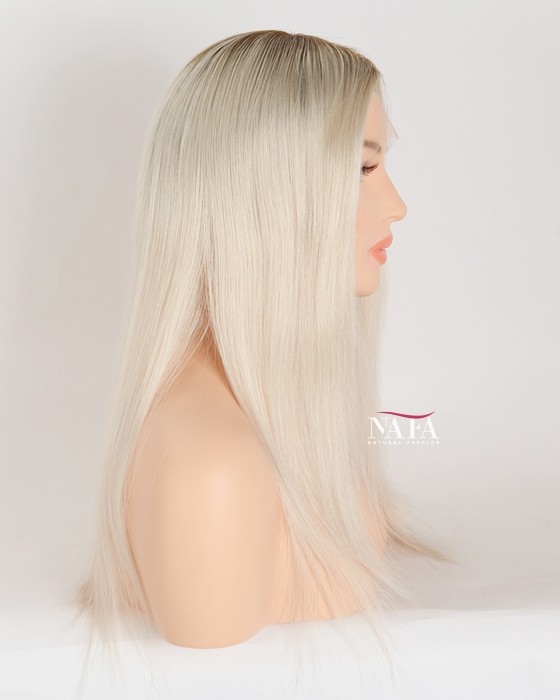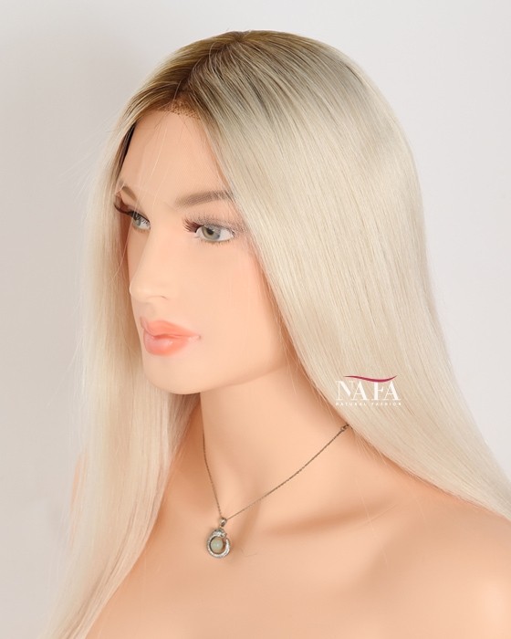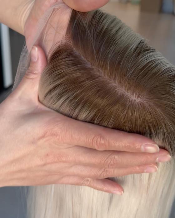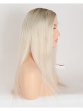 Turn heads with this 16-inch ombre white platinum blonde hair wig, expertly designed with darker roots for a naturally grown-in look. The seamless transition from deep, realistic roots to icy platinum lengths creates depth, dimension, and modern elegance.