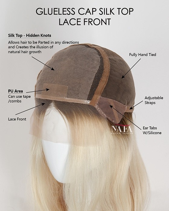 Cap Construction: Lace front glueless cap with silk top, non-slip in sides