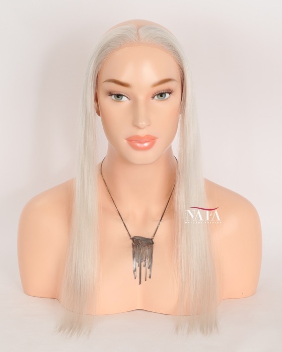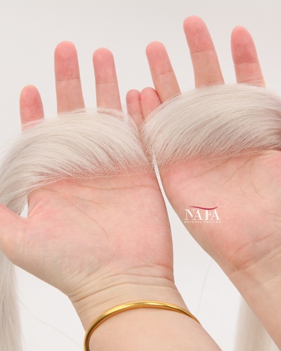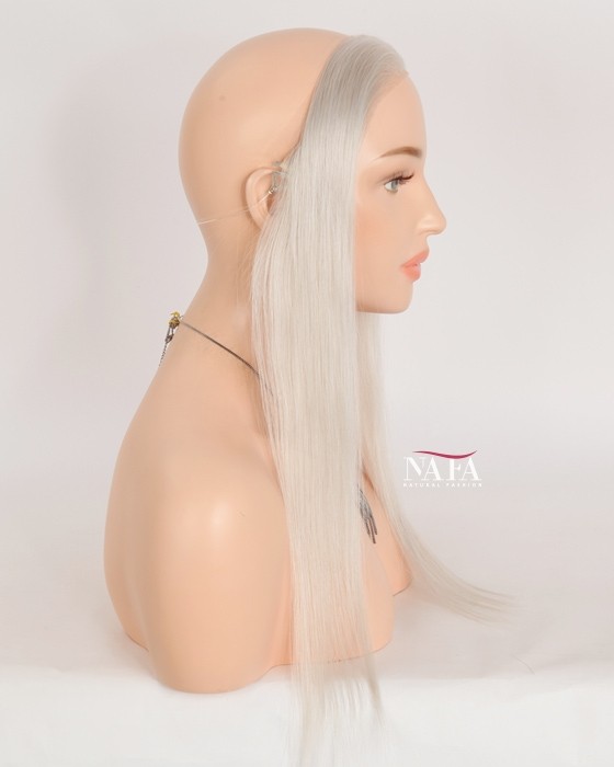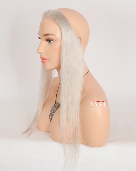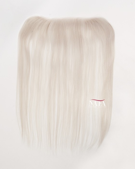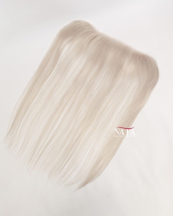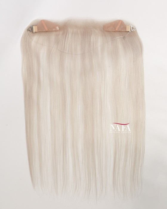 Achieve a flawless, natural-looking front hairline with this 16-inch premium gray halo wire hairline wig topper. Designed for women seeking gentle, non-damaging coverage, the innovative halo wire design sits securely on the head without clips or glue. The sophisticated gray tone blends beautifully with silver, salt-and-pepper, or naturally gray hair, creating an undetectable finish that enhances your natural beauty.