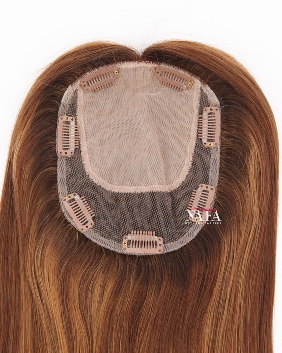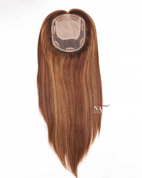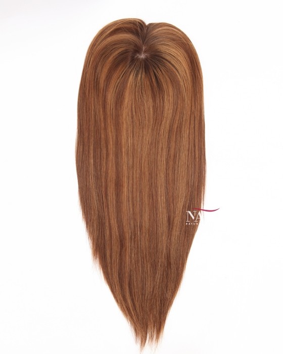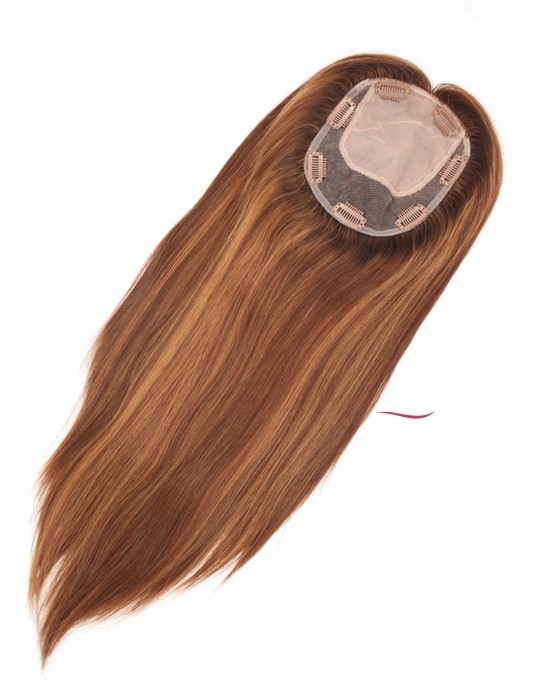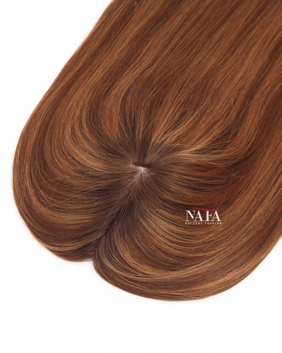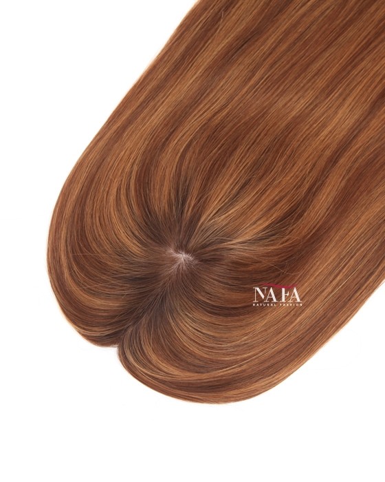 Unlock a new level of confidence with our 16" Silk Base Orange Brunette Human Hair Topper for Women. Meticulously crafted, this topper infuses your hair with natural-looking volume and vibrant orange brunette hues. With its silk base design, it provides a seamless blend with your scalp for an undetectable appearance. Say goodbye to dull, lifeless hair and hello to locks that radiate with vibrant color and volume.
