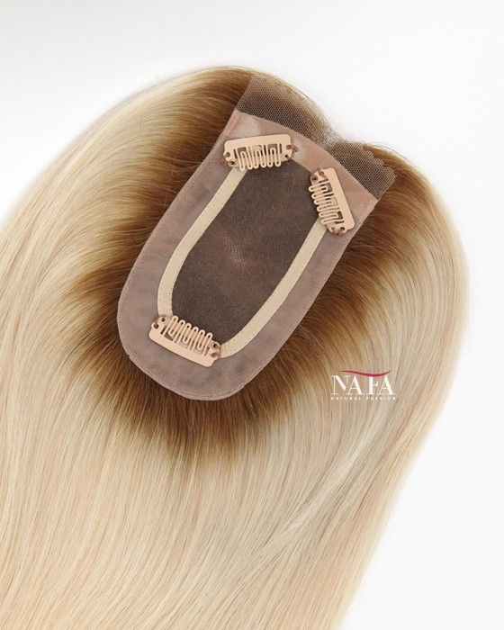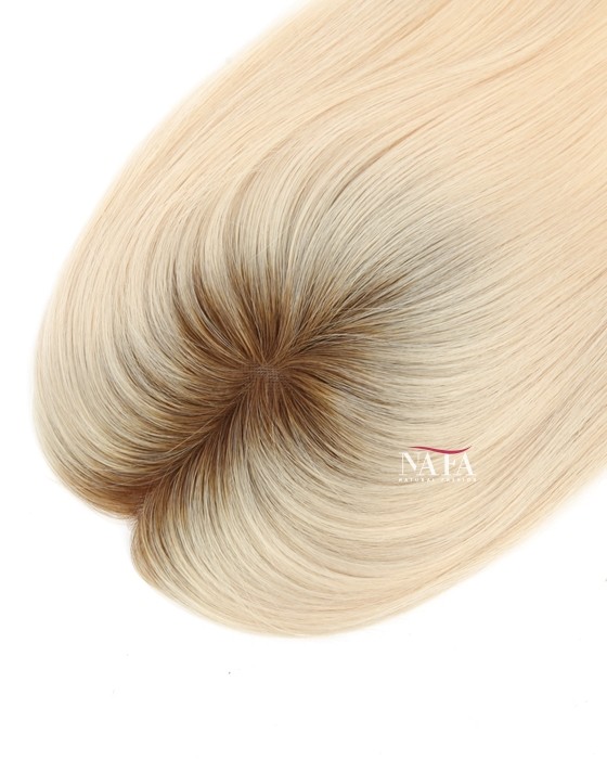 Our 16 Inch Small Mono Platinum Blonde Hair Topper offers versatile styling options to suit any occasion or hairstyle. Whether you prefer sleek and polished or tousled and textured, this topper can be styled effortlessly to complement your unique look. With its realistic appearance and premium quality, you'll enjoy endless styling possibilities to enhance your overall beauty.