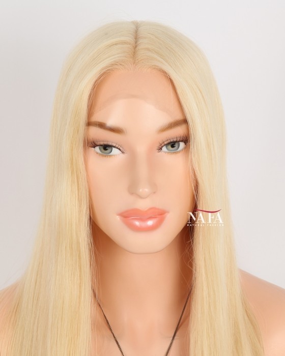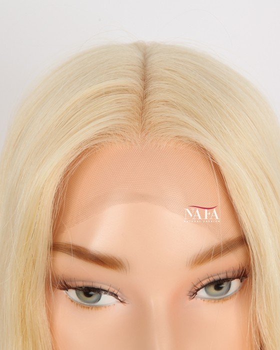 Turn heads with the 18-inch 613 blonde HD lace frontal human hair wig, the ultimate choice for a bright, bold, and effortlessly glamorous look. This platinum blonde wig delivers a vibrant, salon-fresh color that’s perfect for anyone wanting to make a statement. With its silky straight texture and luxurious shine, this wig enhances your beauty with a flawless, high-fashion finish.