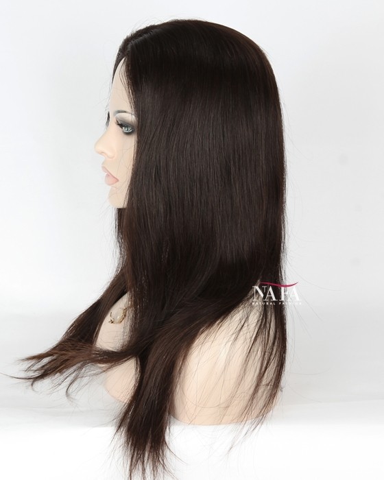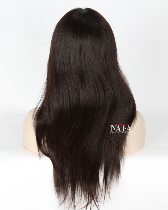 The 18-Inch Black Straight Human Hair Glueless Wig with Brown Lace is the ultimate accessory for those seeking a polished, sophisticated look. The rich black color provides a striking contrast against the natural brown lace, ensuring a seamless blend with your scalp for a realistic appearance.