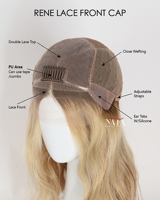 Cap Construction: Lace front, lace top, machine made back, non-slip in sides