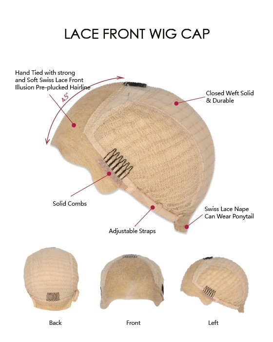 Cap Construction: 4.5" lace front, machine wefts back. With combs