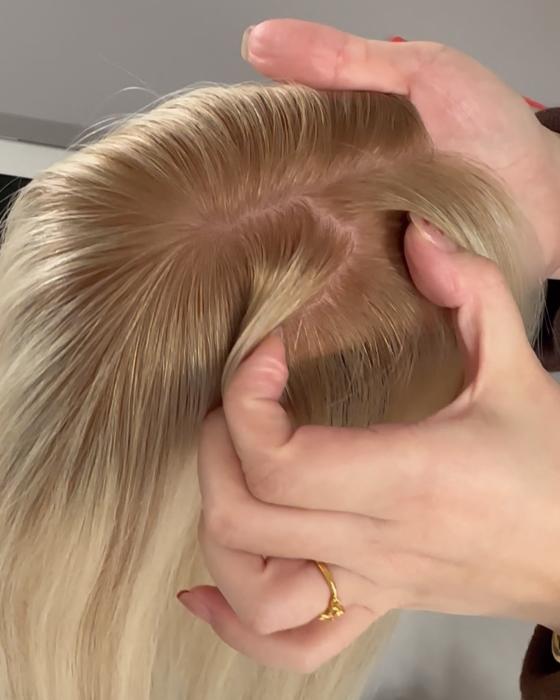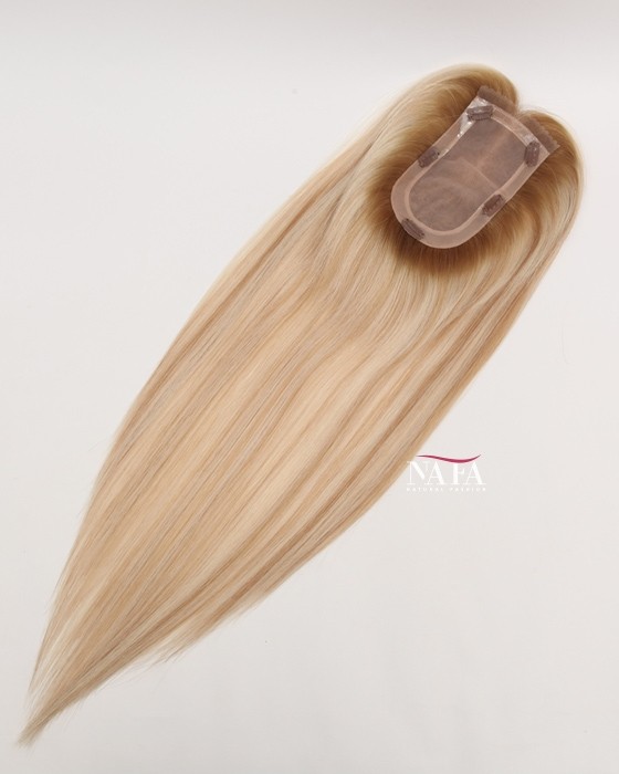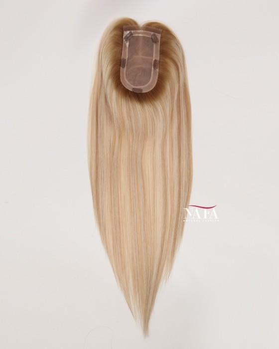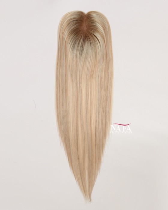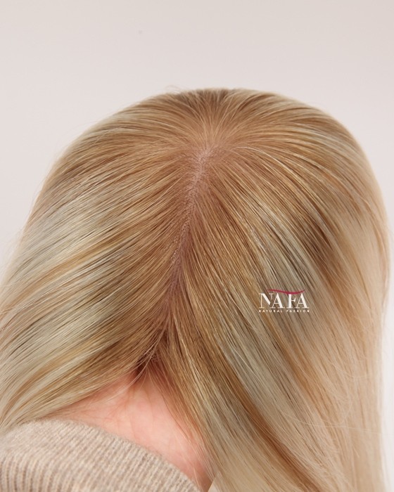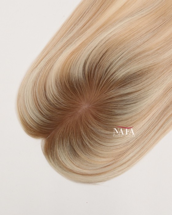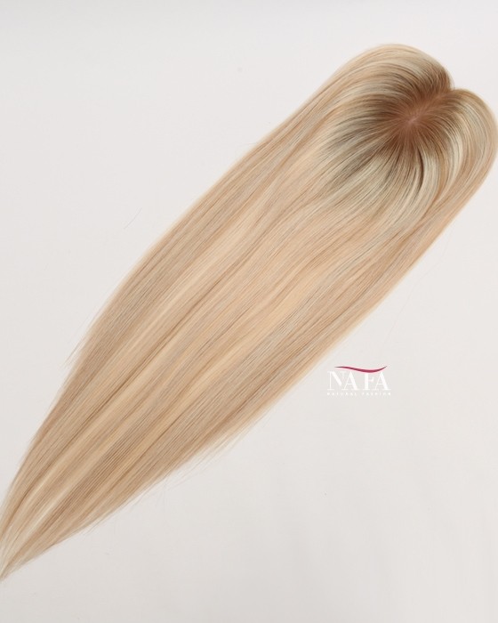 Refresh your look with this 18-inch ombre light thin hair topper—thoughtfully designed for ladies with fine or thinning hair. The gentle ombre blend transitions smoothly from natural-looking roots to lighter ends, adding depth and brightness It offers graceful coverage at the top of the head while maintaining an airy, realistic feel.
