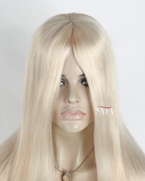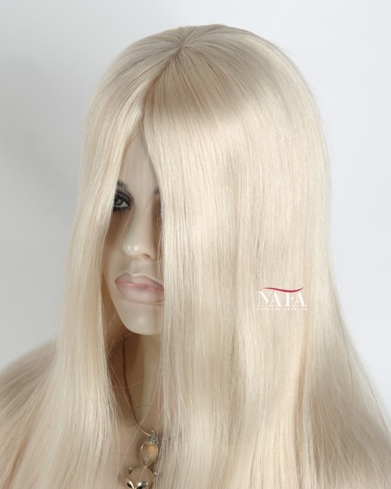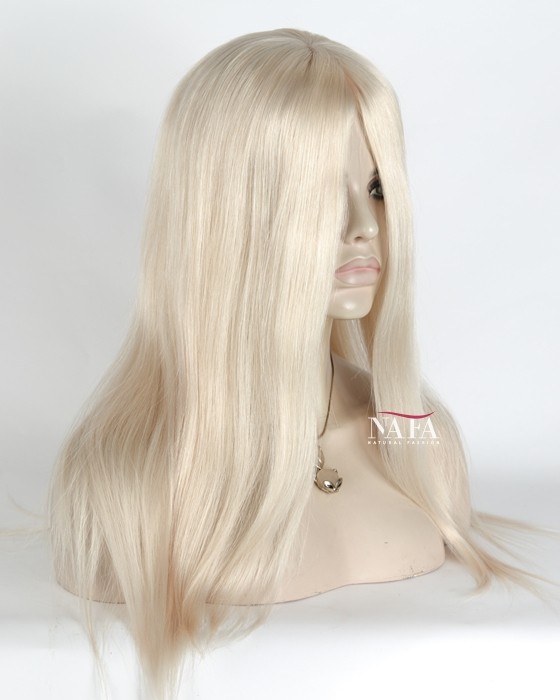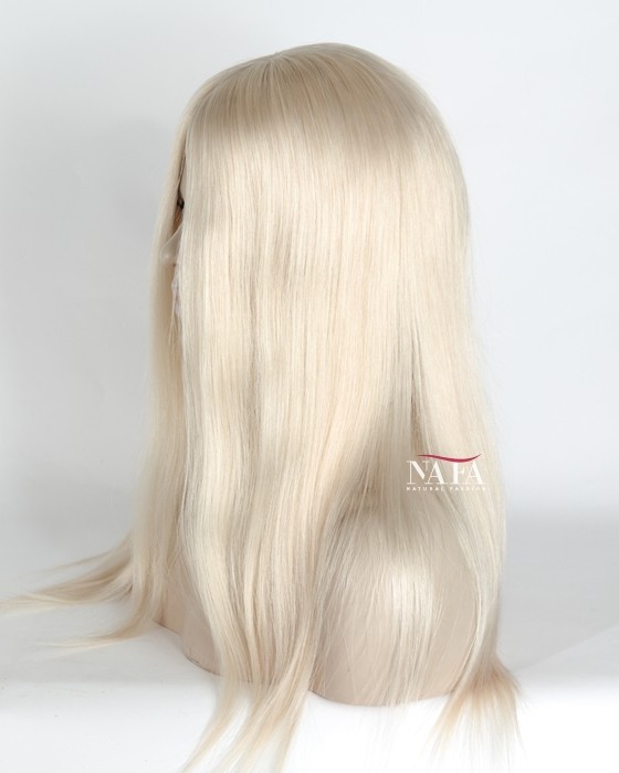 Transform your look effortlessly with the 18-Inch White Blonde Straight Human Hair Wig. Made from 100% real human hair, this wig delivers a silky, natural shine that blends seamlessly with your own hairline. Its stunning white-blonde tone is perfect for creating a bold, modern statement or achieving that timeless, elegant glow.