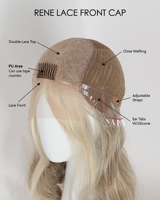 Cap Construction: Lace front, lace top, machine made back, non-slip in sides