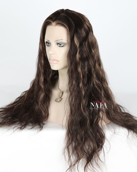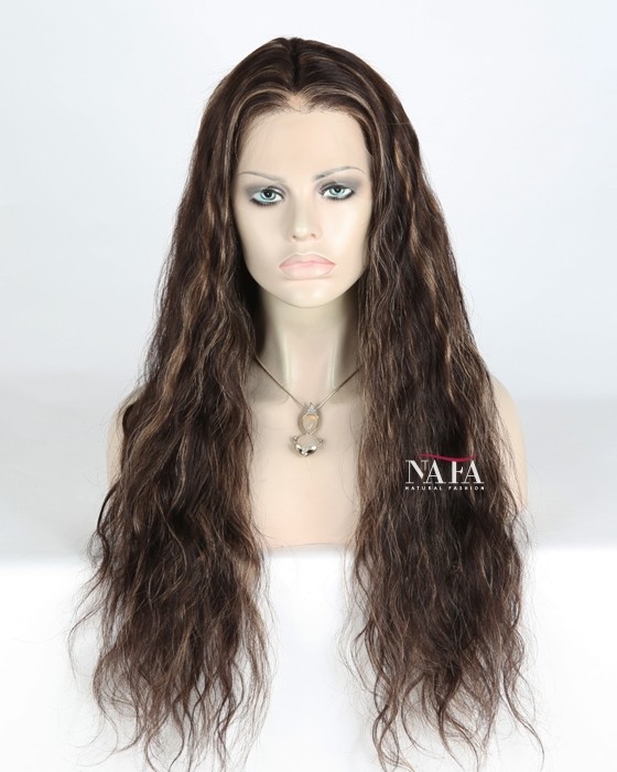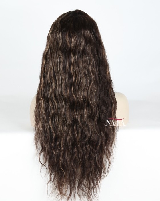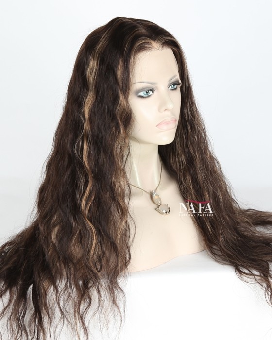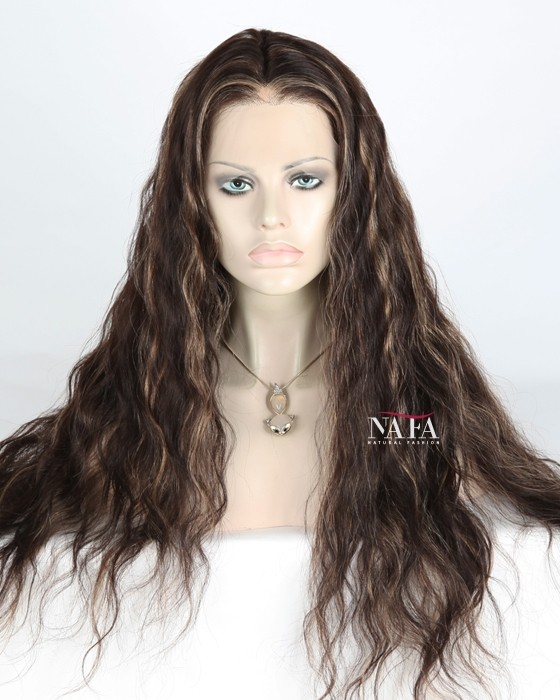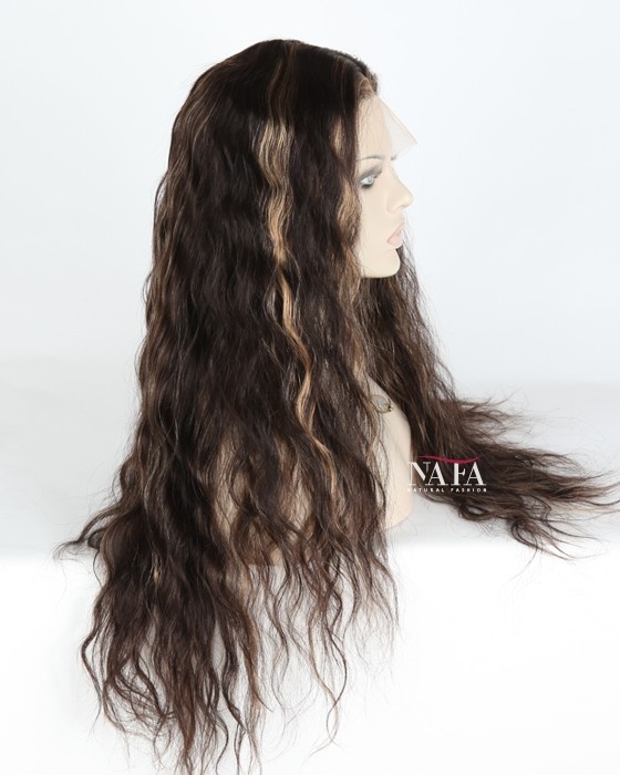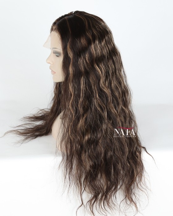 Make a statement with the 24 Inch Long Black Wavy Hair Wig with Blonde Highlights, a stunning combination of deep, rich black waves accented with striking blonde highlights. This wig offers a dramatic yet elegant look, perfect for those who want to stand out with their style. The contrast between the dark base and light highlights adds depth and dimension, giving you a multidimensional hairstyle that catches the eye.