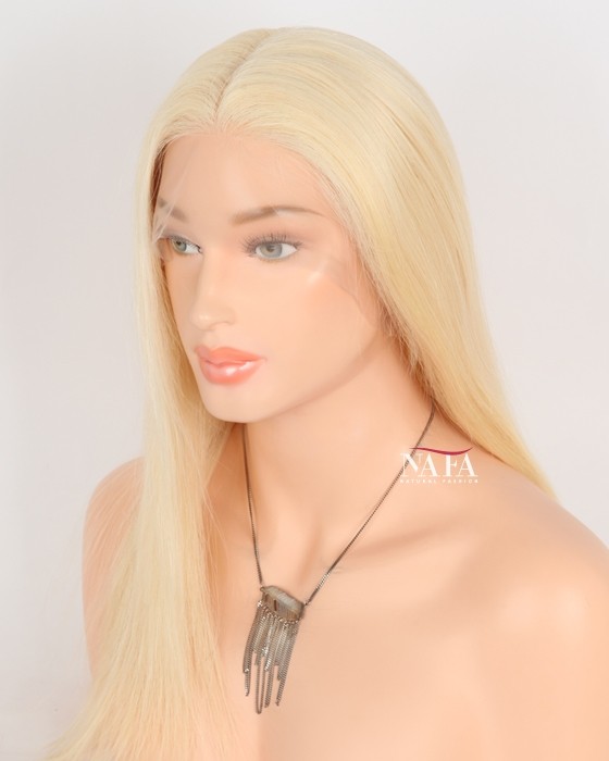 9A Grade 613 Blonde Silky Straight Lace Front Human Hair Wig, 130% Density