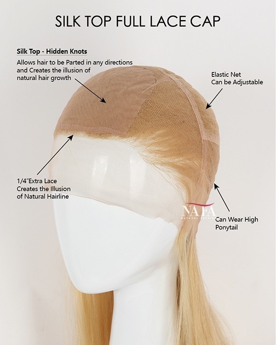 Cap Construction: Full Swiss lace cap with silk top (4.5"x4.5")