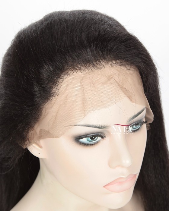 2) Secure lace front wig along hairline. Trim lace around the front of your hairline.