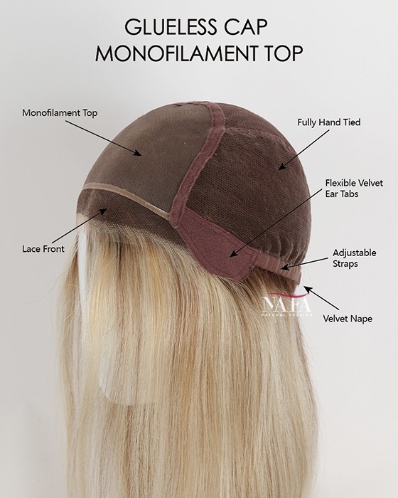 Cap Construction: Monofilament top glueless cap (full hand tied)