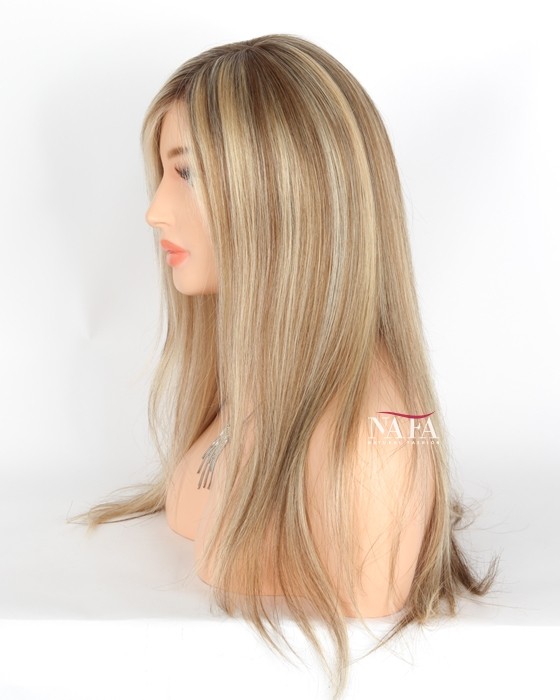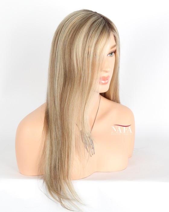 Transform your look with the Best Monofilament Top Highlight Honey Blonde Wig with Brown Roots. The stunning honey blonde highlights bring a warm and radiant glow to your appearance, perfectly contrasted by the natural brown roots. This dynamic color combination creates a sun-kissed effect that looks effortlessly chic. Ideal for any occasion, this wig enhances your natural beauty with its vibrant and eye-catching hues.