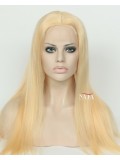 Place the 100 virgin human hair wig on your head. Adjust the straps at back of the front lace wig until it completely fits your head. Brush the hair with a wig brush to detangle.