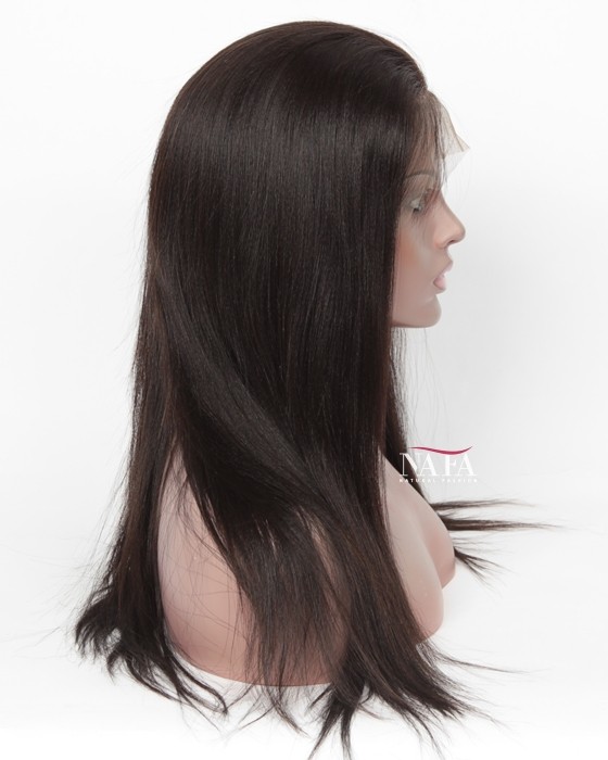 Cap Construction: Swiss lace perimeter, machine made on top. With adjustable straps and combs