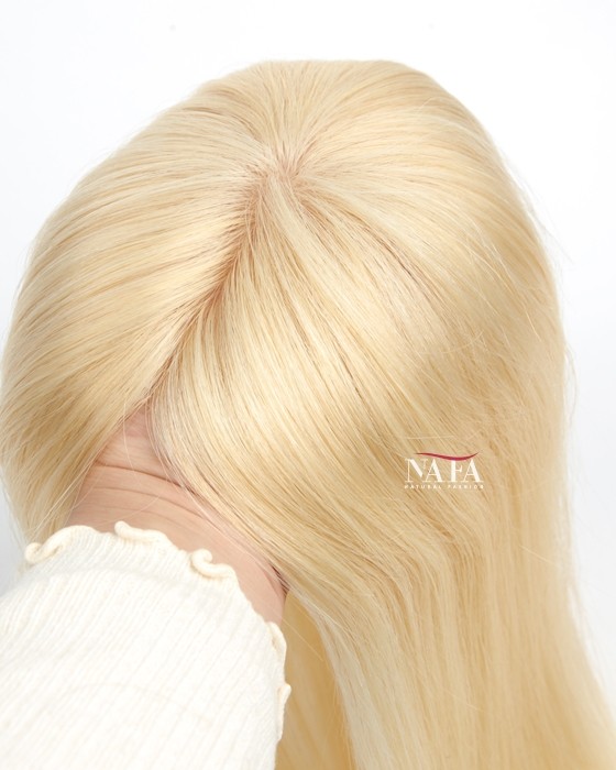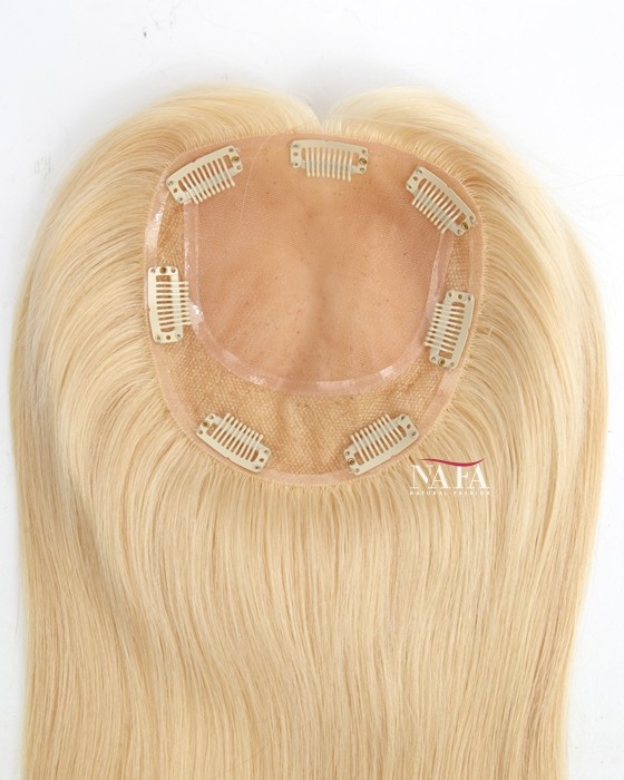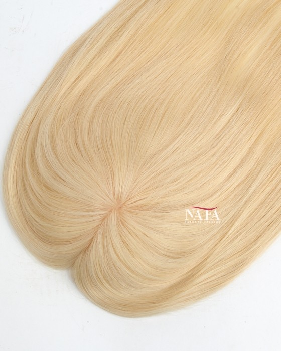 Introducing the Natural Looking Real Human Hair Topper with a Silk Base, designed to give you the most realistic and seamless blend with your natural hair. This blonde topper features a silk base that mimics the appearance of your scalp, ensuring that your hair looks naturally full and voluminous. This piece offers a soft, luxurious feel and a natural shine that enhances your overall look, whether you’re dealing with thinning hair or simply want to add some extra volume.