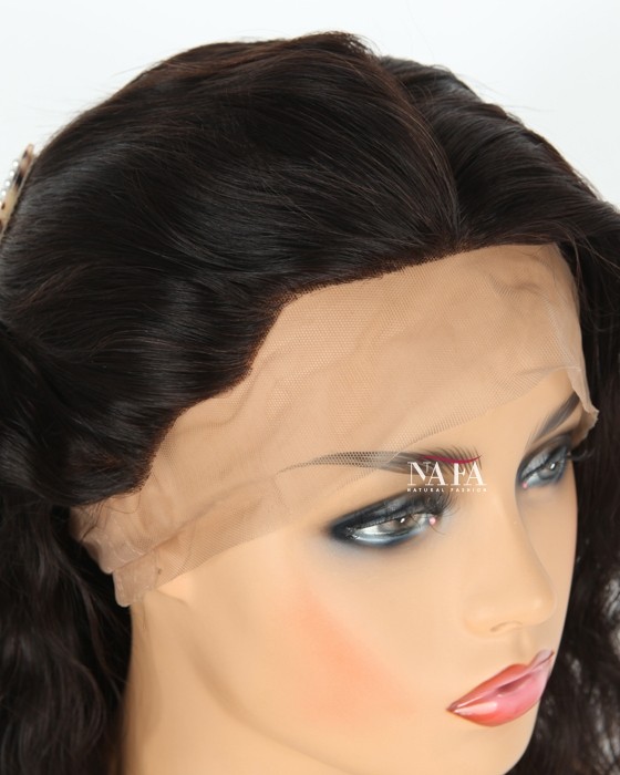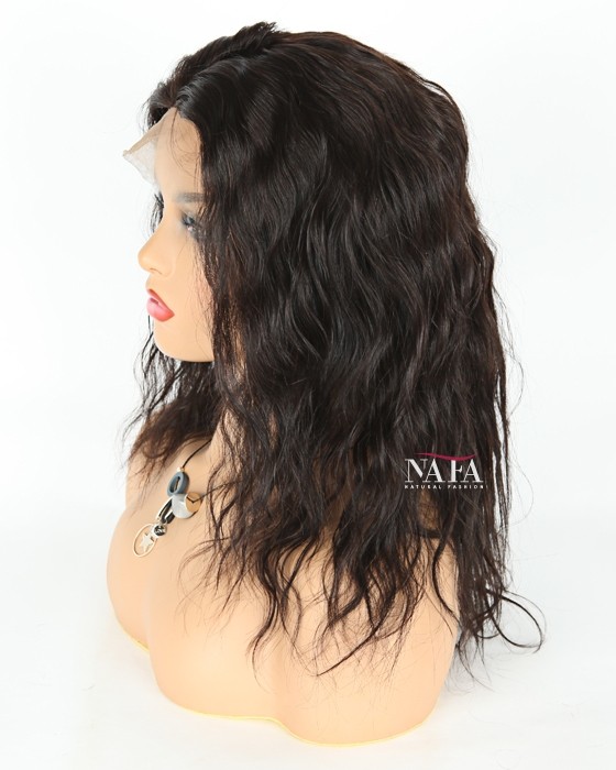 Cap Construction: Swiss lace perimeter, machine made on top. With adjustable straps and combs