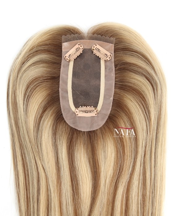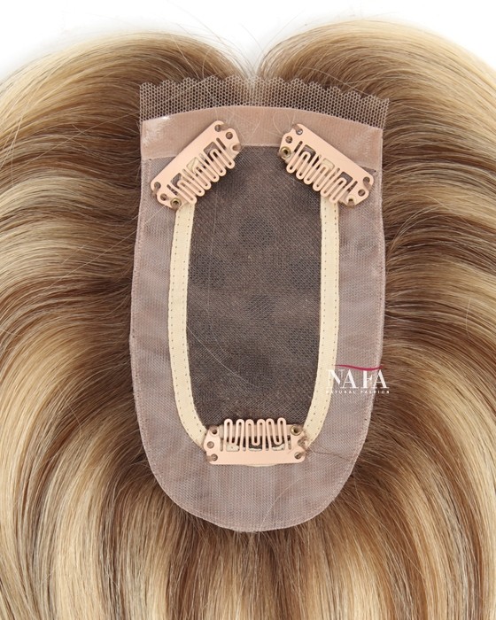 Transform Your Look with Our 16 Inch Light Brown Hair with Blonde Highlights Top Pieces