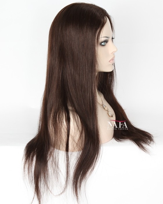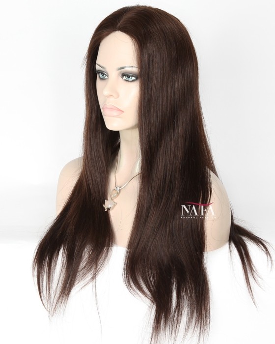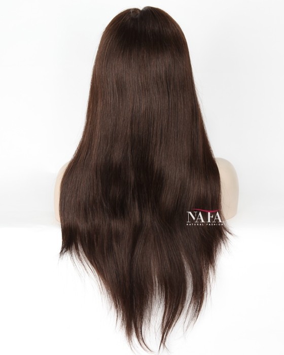 Timeless Elegance: 20-Inch Long Dark Brown Straight Silk Base Human Hair Wig