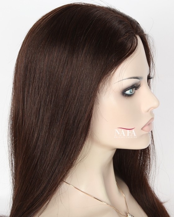 You're reviewing: Timeless Elegance: 20-Inch Long Dark Brown Straight Silk Base Human Hair Wig