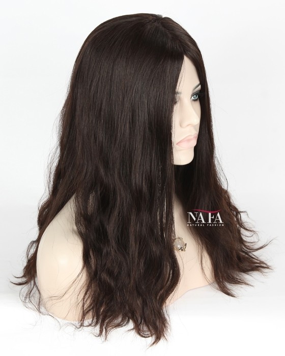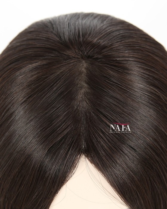Cap Construction: Silk top (5"x5"), Machine made in back