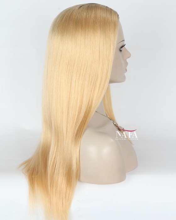 Our Top Fashion Blonde Ombre Human Hair Wig brings you the latest in hair color trends, with a stunning gradient from darker roots to vibrant blonde ends. This stylish ombre effect is perfect for anyone looking to add dimension and brightness to their look. This wig offers a bold, eye-catching appearance that's sure to turn heads.